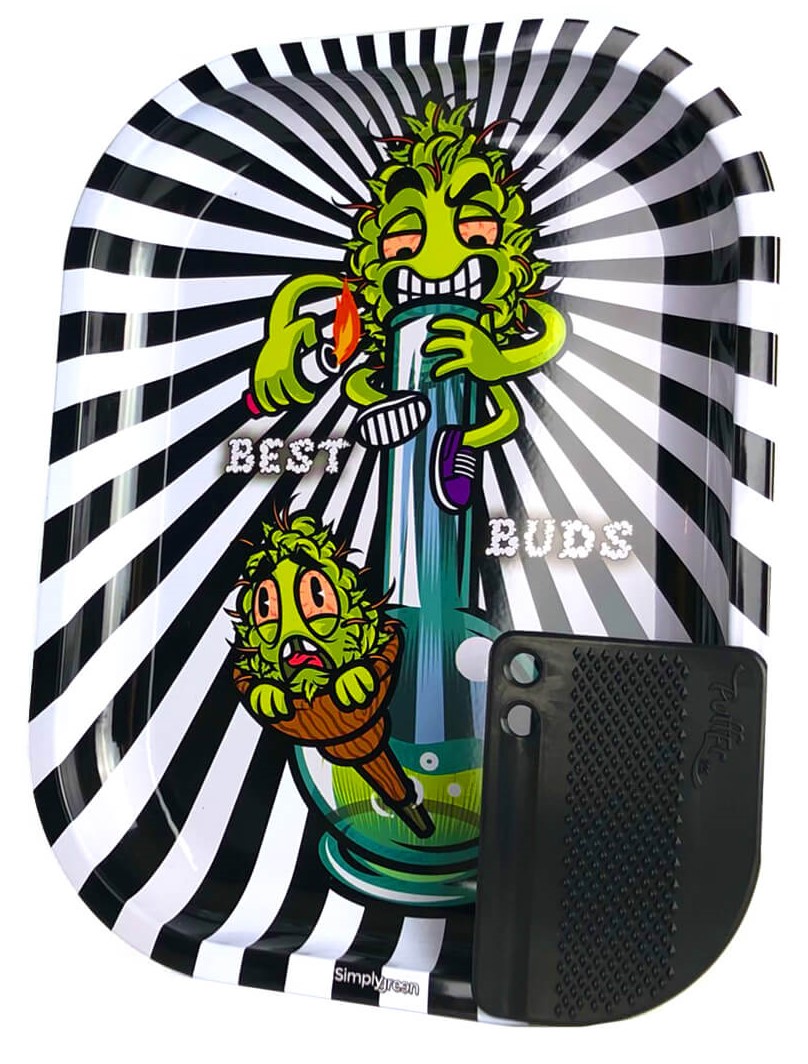 Fabriqué à partir d’aluminium de haute qualité, le plateau Best Buds est conçu pour durer et est un accessoire essentiel. Sa petite taille (14 × 18cm) est parfaite pour l’amener partout avec vous. En plus de son illustration graphique fun, une carte de meulage magnétique est fournie pour une expérience parfaite.